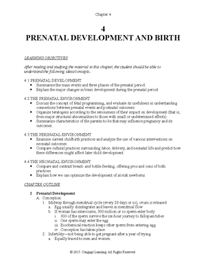 Sigelman 8e Im Chapter 4 4 Prenatal Development And Birth Learning Objectives After Reading And Studocu