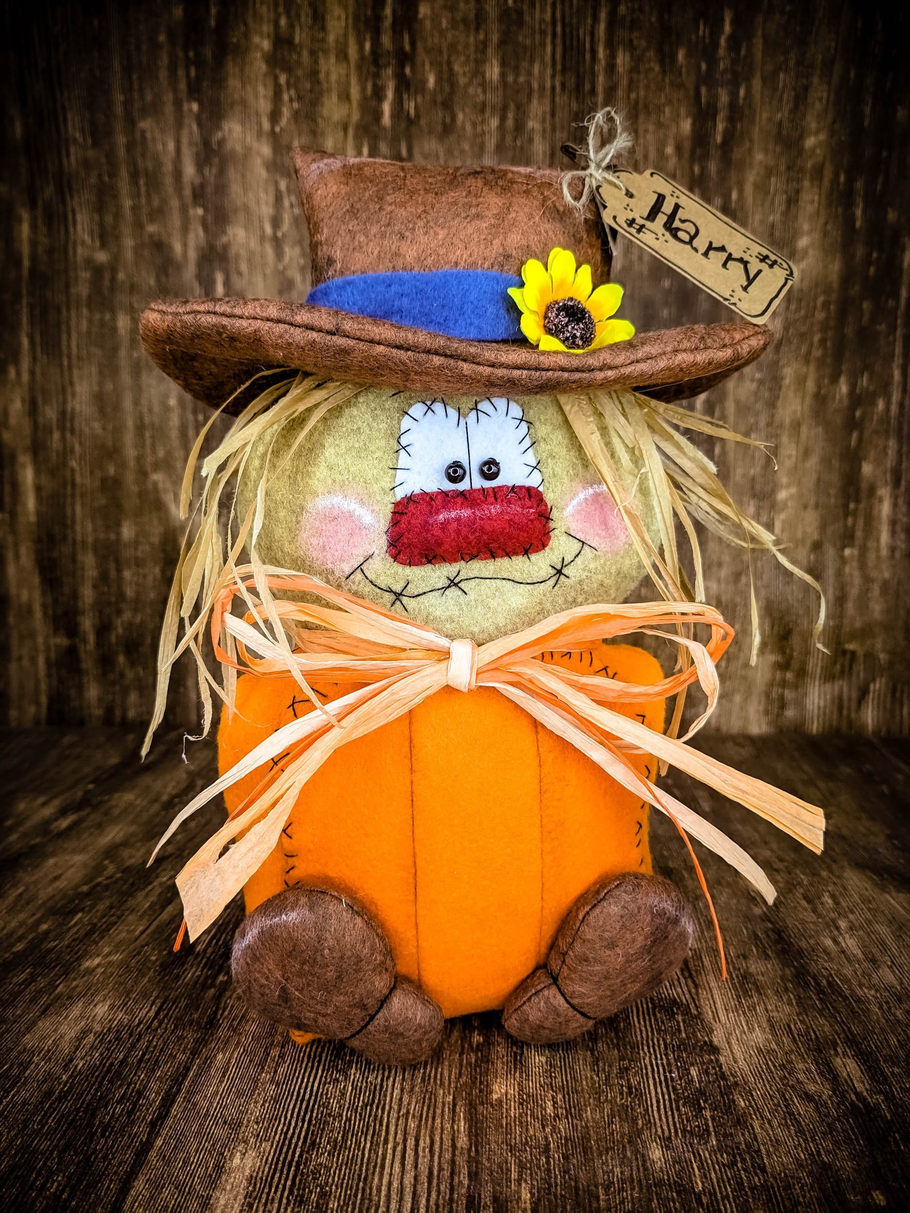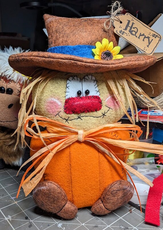 Harry The Pumpkin Scarecrow Fall Shelf Sitter Primitive Etsy
